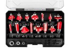 Sada bitov frézky s karbidovými čepieľkami, zabalená v praktickom boxe na bity Stack Pack s vložkou z machovej gumy.