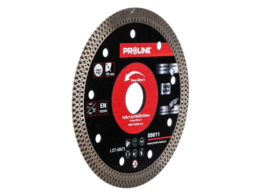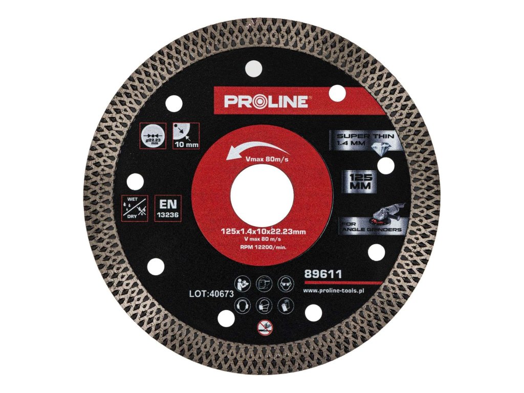 Diamantový kotúč Proline 89611 je presný a spoľahlivý nástroj, ktorý je ideálny na spracovanie tvrdých materiálov. Vďaka pokročilému dizajnu a vysoko kvalitnému spracovaniu zaisťuje účinnosť, efektívnosť a estetiku povrchovej úpravy.