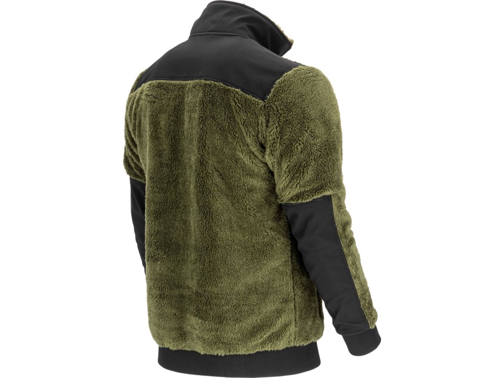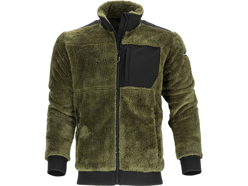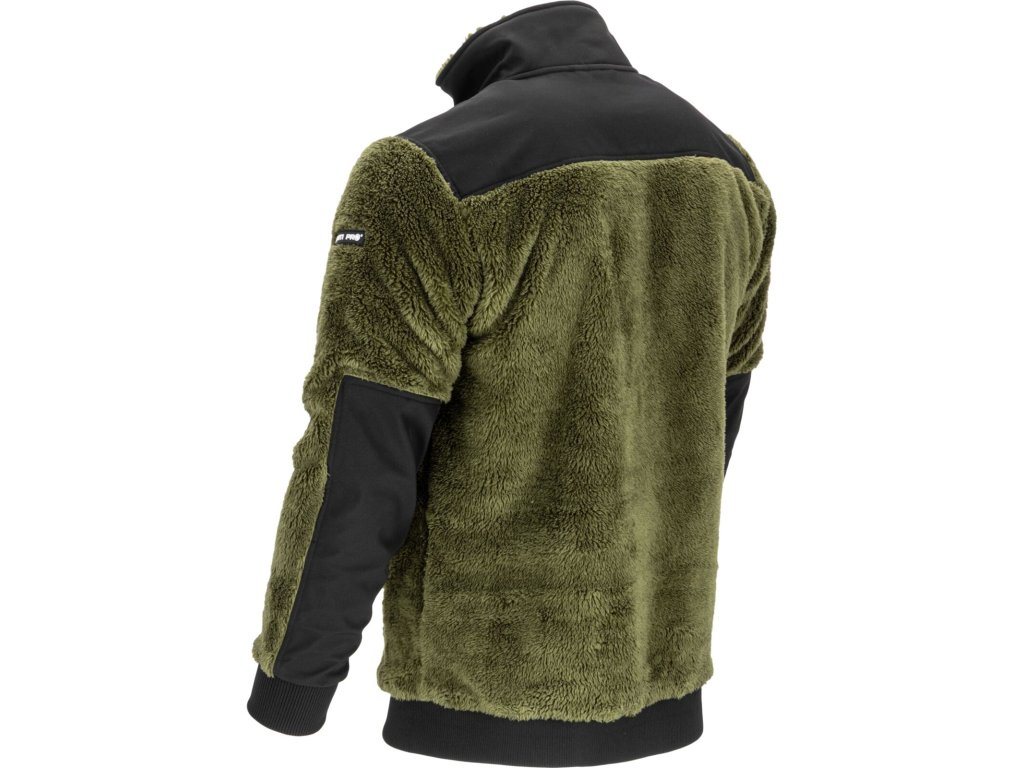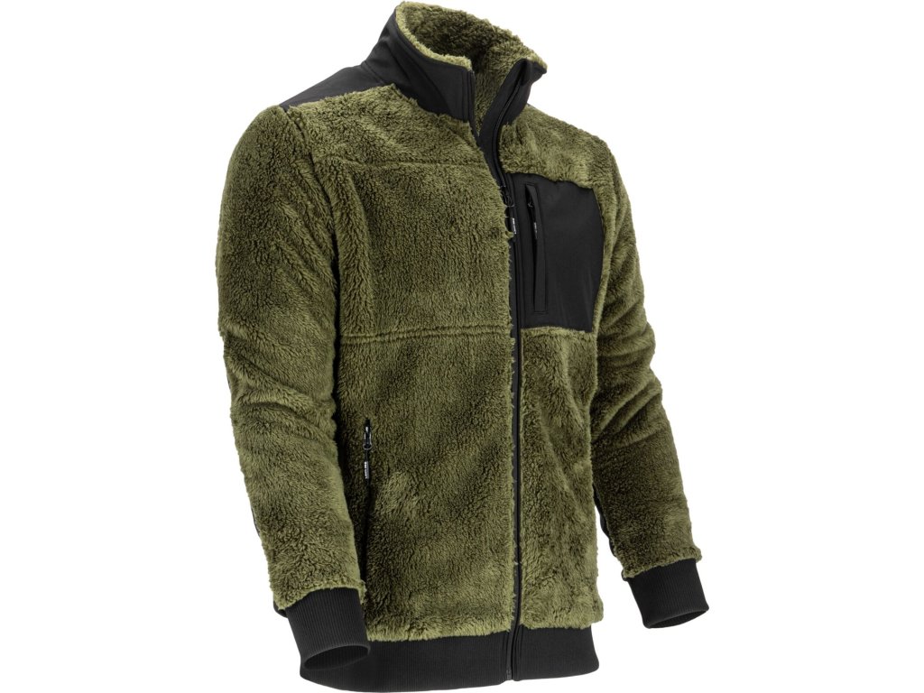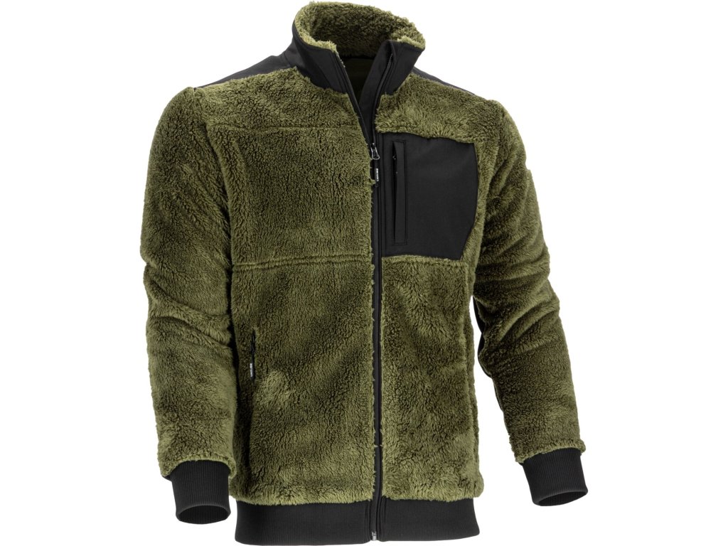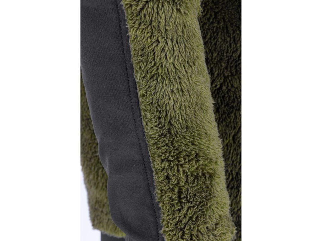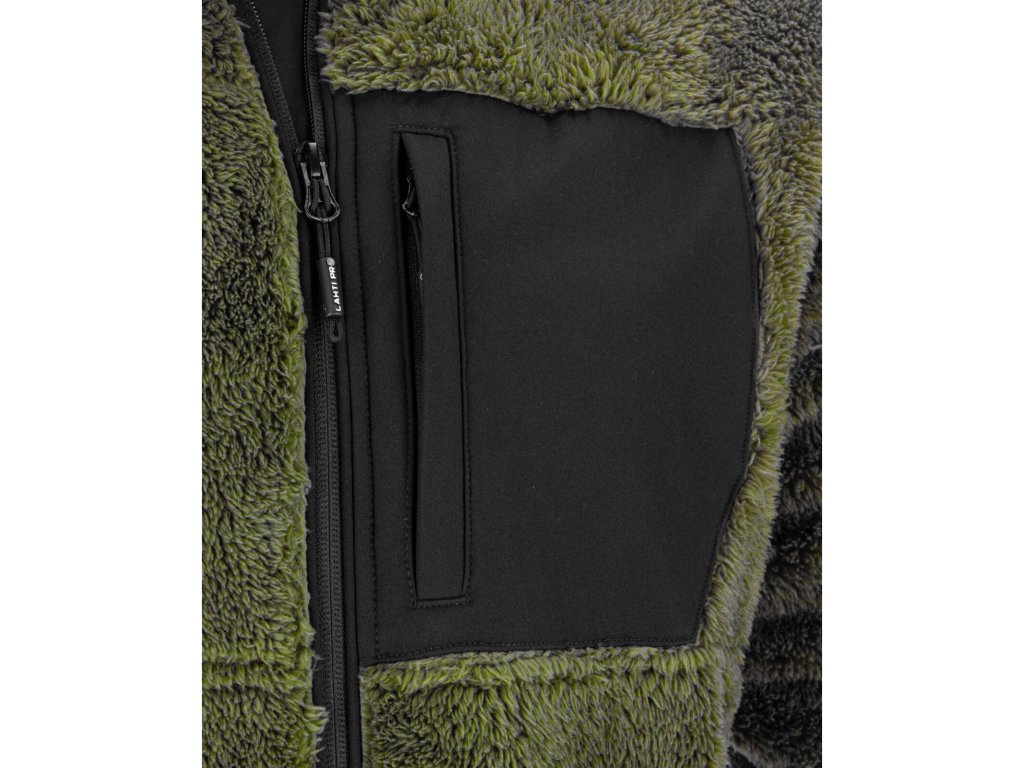 Pánska zelená mikina na zips zo sherpa flísu s vreckami Lahti Pro