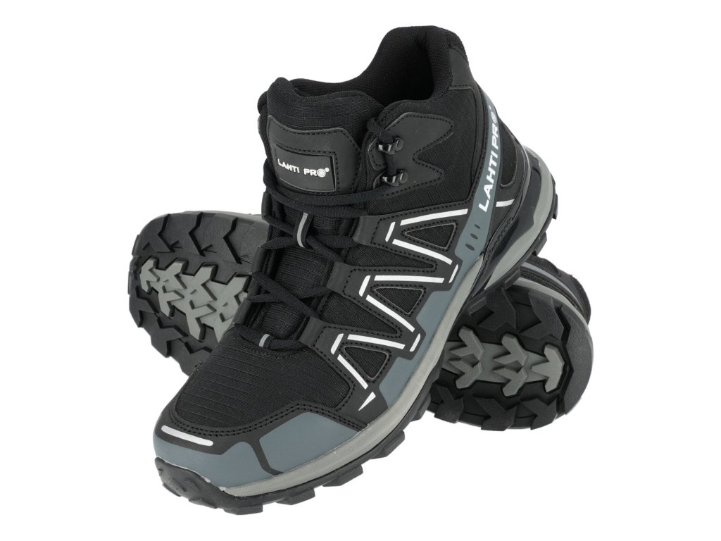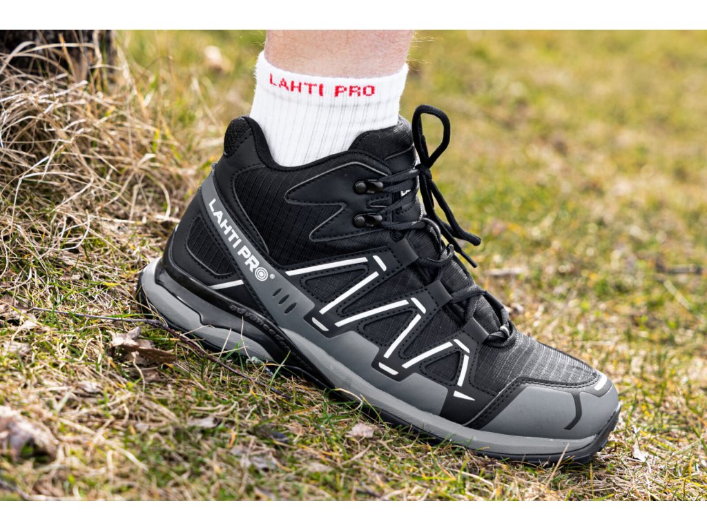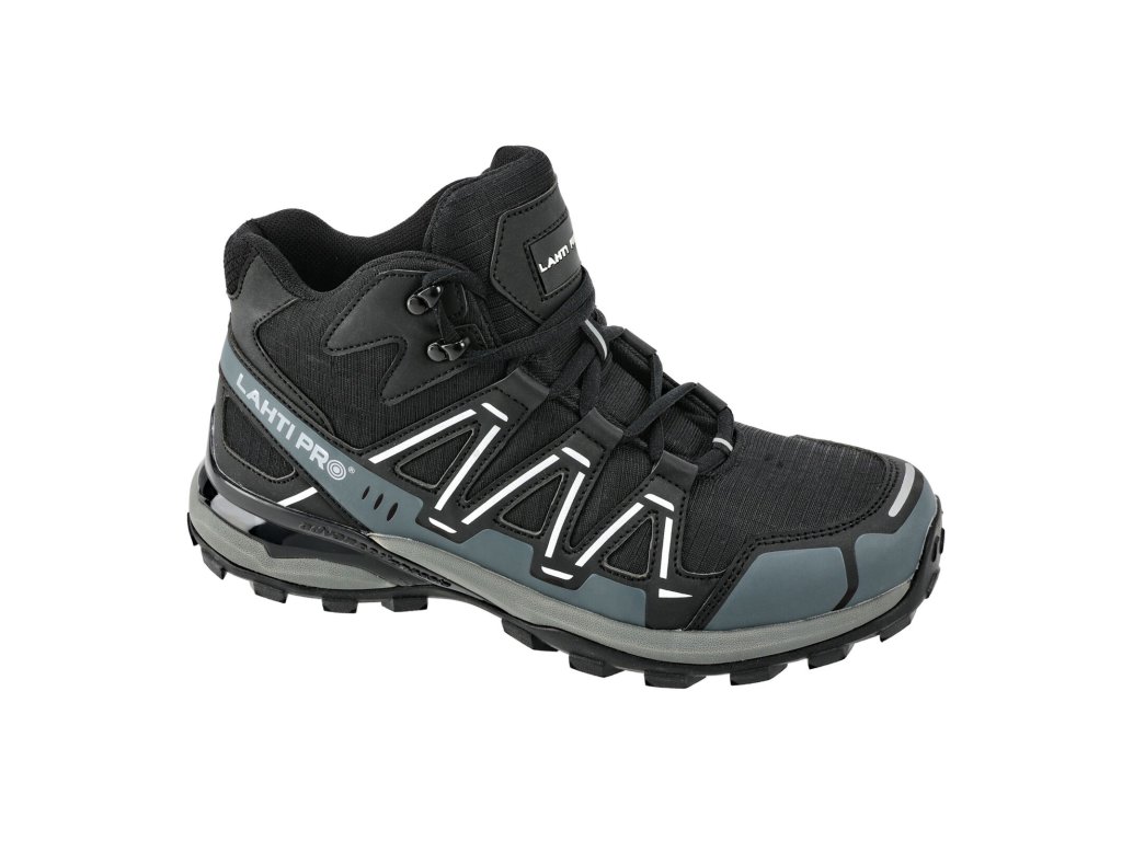 Pánska pracovná obuv Lahti Pro model L30124 je vyrobená z nepremokavého rip-stop úpletu. Podšívka, ktorá je jedným z najdôležitejších prvkov v topánke kvôli priamemu kontaktu s chodidlom, je vyrobená zo sieťovaného úpletu. Podšívka pracovnej topánky, bežne nazývaná stielka, je vymeniteľná. Gumová podrážka s protišmykovými vlastnosťami na keramickom podklade - bezpečnostný štandard O2 - a hlboký chránič s modernou dizajnovou líniou zabezpečujú vysokú stabilitu obuvi a zvyšujú pohodlie pri používaní. Pánska pracovná obuv model L30124 má antistatické vlastnosti. V súlade s normou SRA má pracovná obuv uzavretú pätu, obmedzenú priepustnosť a nasiakavosť vody a absorpciu energie v pätovej časti. Okrem toho je obuv vybavená reflexnými prvkami, ktoré zlepšujú viditeľnosť. Obuv má bezpečnostnú kategóriu O2 SRA a spĺňa ustanovenia normy EN ISO 20347:2011. Pracovná obuv Lahti Pro L30124 má vyhlásenie CE, obuv patrí do druhej kategórie osobných ochranných prostriedkov.