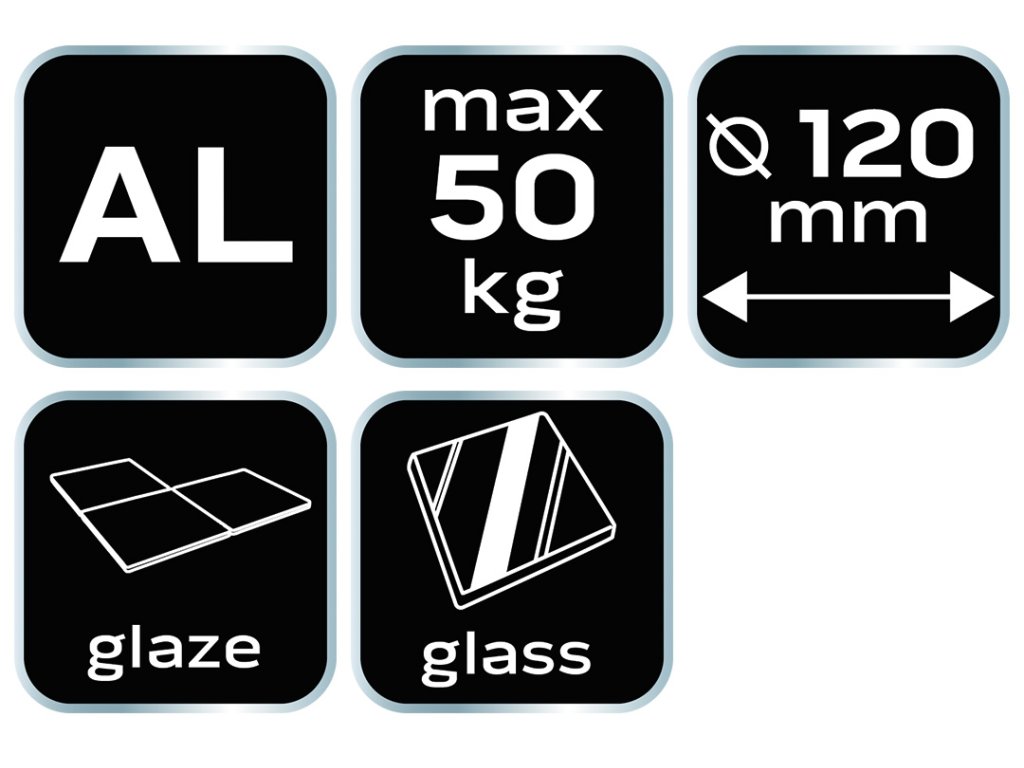 Jednoduchý sací mechanizmus umožňuje presúvať hladké prvky do hmotnosti 50 kg, napríklad sklo, lakované dosky, plastové dosky, plexisklo. Gumové prísavky s priemerom 120 mm zaistia vysoký komfort a bezpečnosť.
