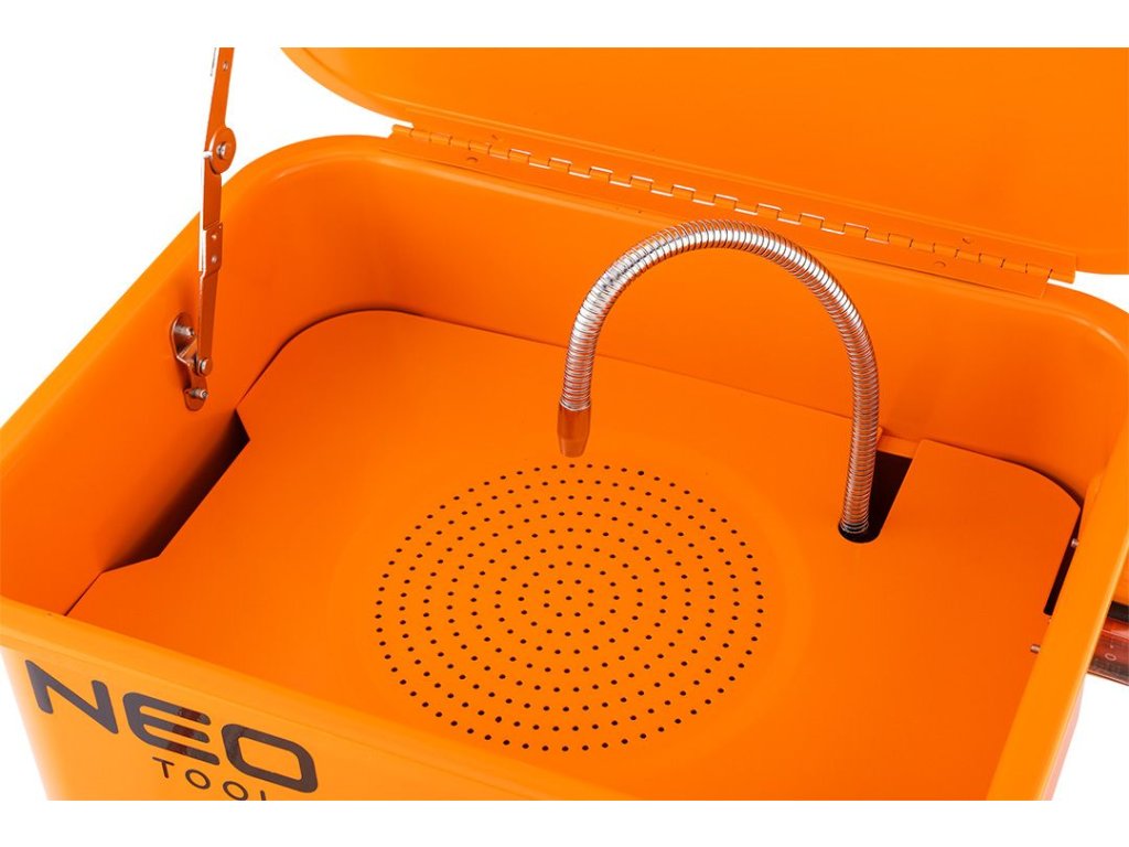 Umývačka NEO TOOLS je napájaná napätím 230 V/50 Hz a je vybavená flexibilnou 350 mm hadicou pre jednoduché ovládanie prietoku kvapaliny. Kompaktný dizajn a menšie rozmery uľahčujú prepravu zariadenia a šetria miesto. Je to ideálna voľba pre mechanikov a domácich majstrov, ktorí hľadajú robustný a praktický nástroj do svojej dielne. Vlastnosti produktu:
