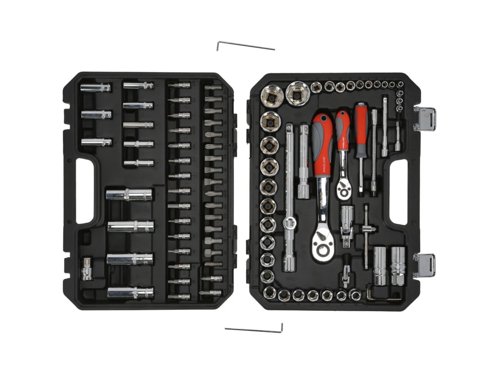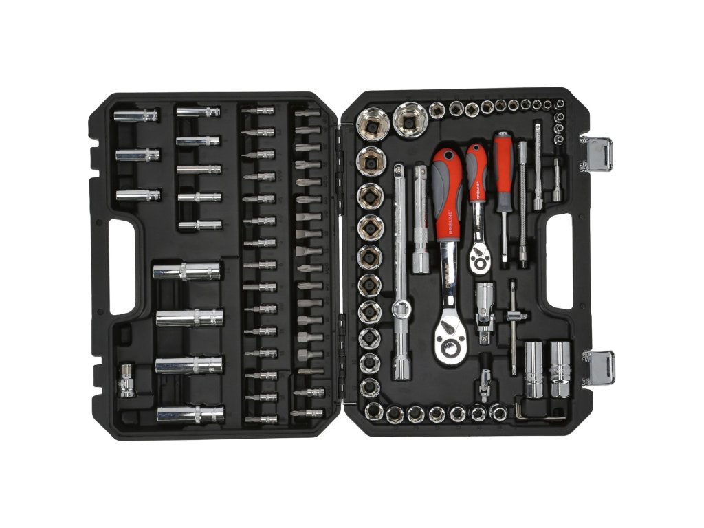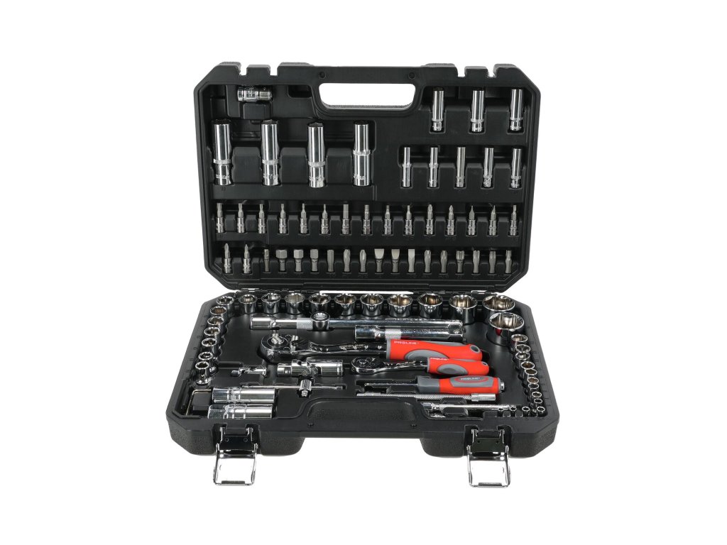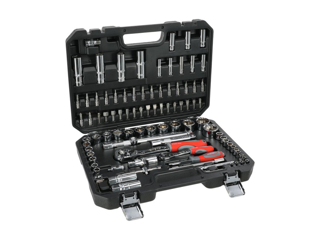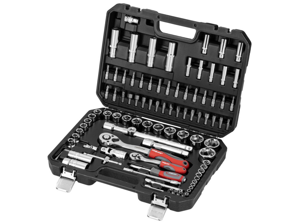 NEO Tools Gola sada sa skladá zo 110 kusov vyrobených z vysoko kvalitnej chrómvanádiovej ocele. Sada obsahuje račne 1/2 "a 1/4" (odolný račňový mechanizmus - 72 zubov) s...